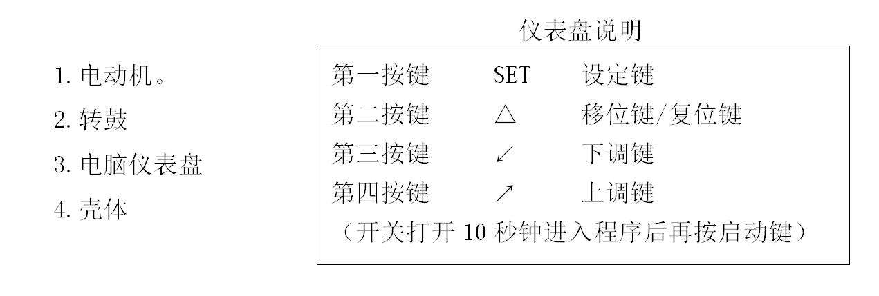 (減1)在進(jìn)入設(shè)定轉(zhuǎn)鼓數(shù)后用于減少某位數(shù)值。