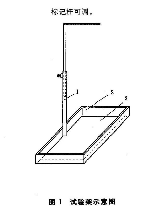 4.3試驗架,如圖1所示,鋼板厚度不小于15mm,長約1200mm,寬約900mm。四周擋板高約200mm,有一邊活動,以便于清掃。