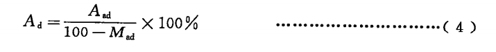 Aad——空氣干燥基灰分的質(zhì)量分?jǐn)?shù),%;