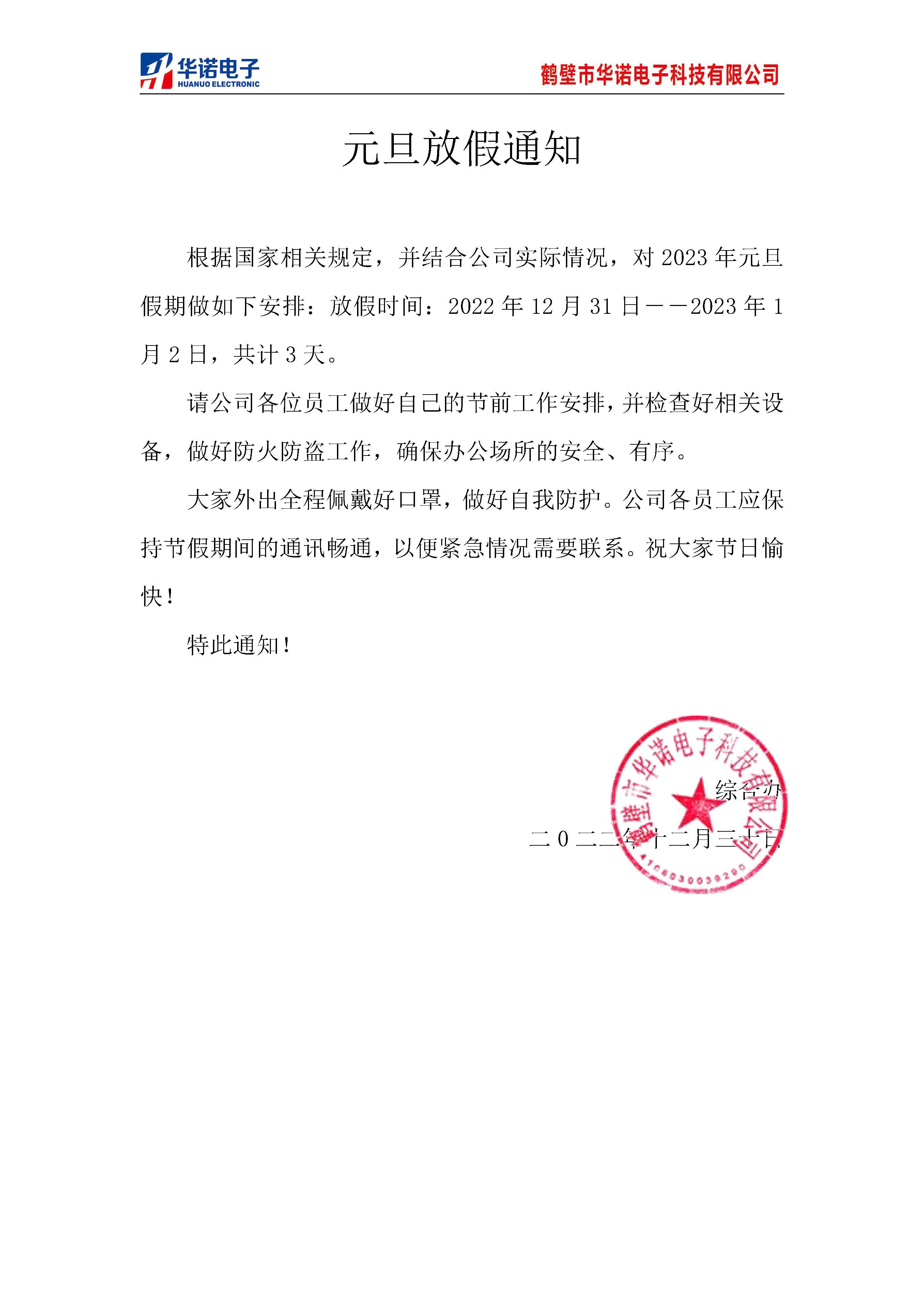 ●【華諾電子 | 放假通知】華諾煤檢儀器 元旦放假通知!